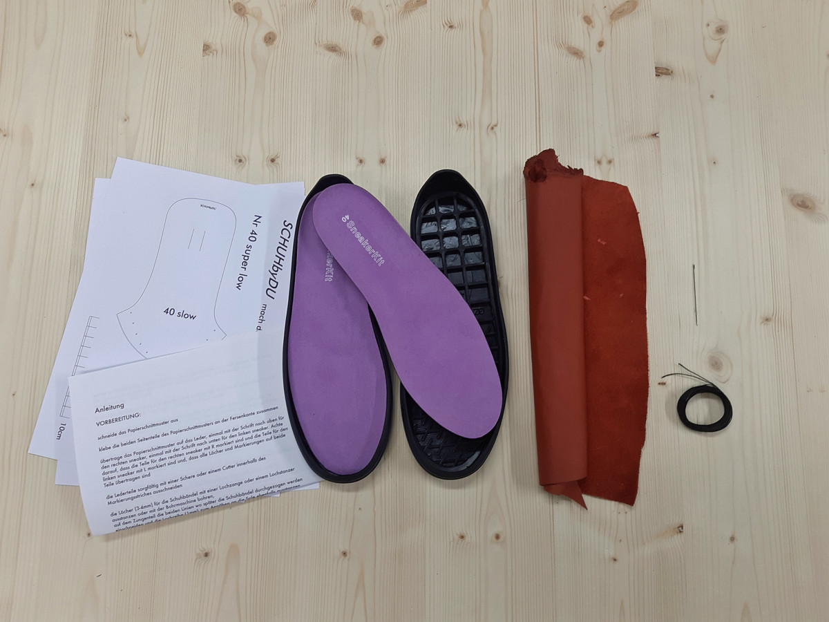 Sohle, Faden, Nadel, Leder, Schnittmuster